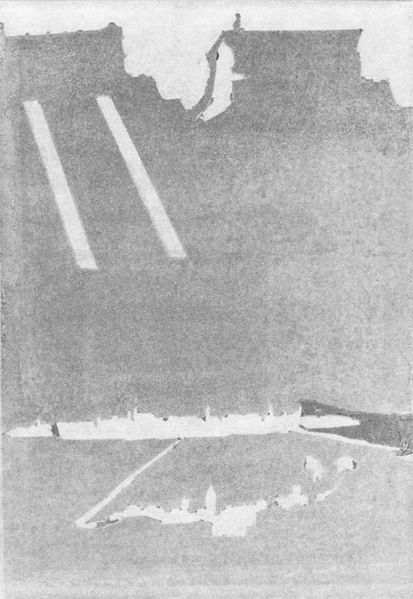 L’empreinte de papiers-découpés, dans ces impressions, fait apparaître des surfaces. Des textures et des matières sont « prises » dans l’encre étalée sur la plaque. Des empreintes de papiers à la surface du monotype.